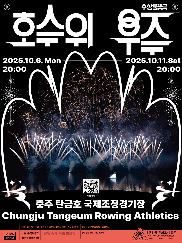 2025년 추석 연휴 충주에서 만나는 수상불꽃극 <호수 위 우주>는 단순한 볼거리를 넘어, 충주의 문화와 예술을 동시에 경험할 수 있는 필수 코스입니다. 낮에는 중앙탑 사적공원과 탄금호 무지개길을 걸으며 가을의 정취를 만끽하고, 밤에는 탄금호 위에서 펼쳐지는 화려한 불꽃극으로 잊지 못할 추억을 만들어 보세요.