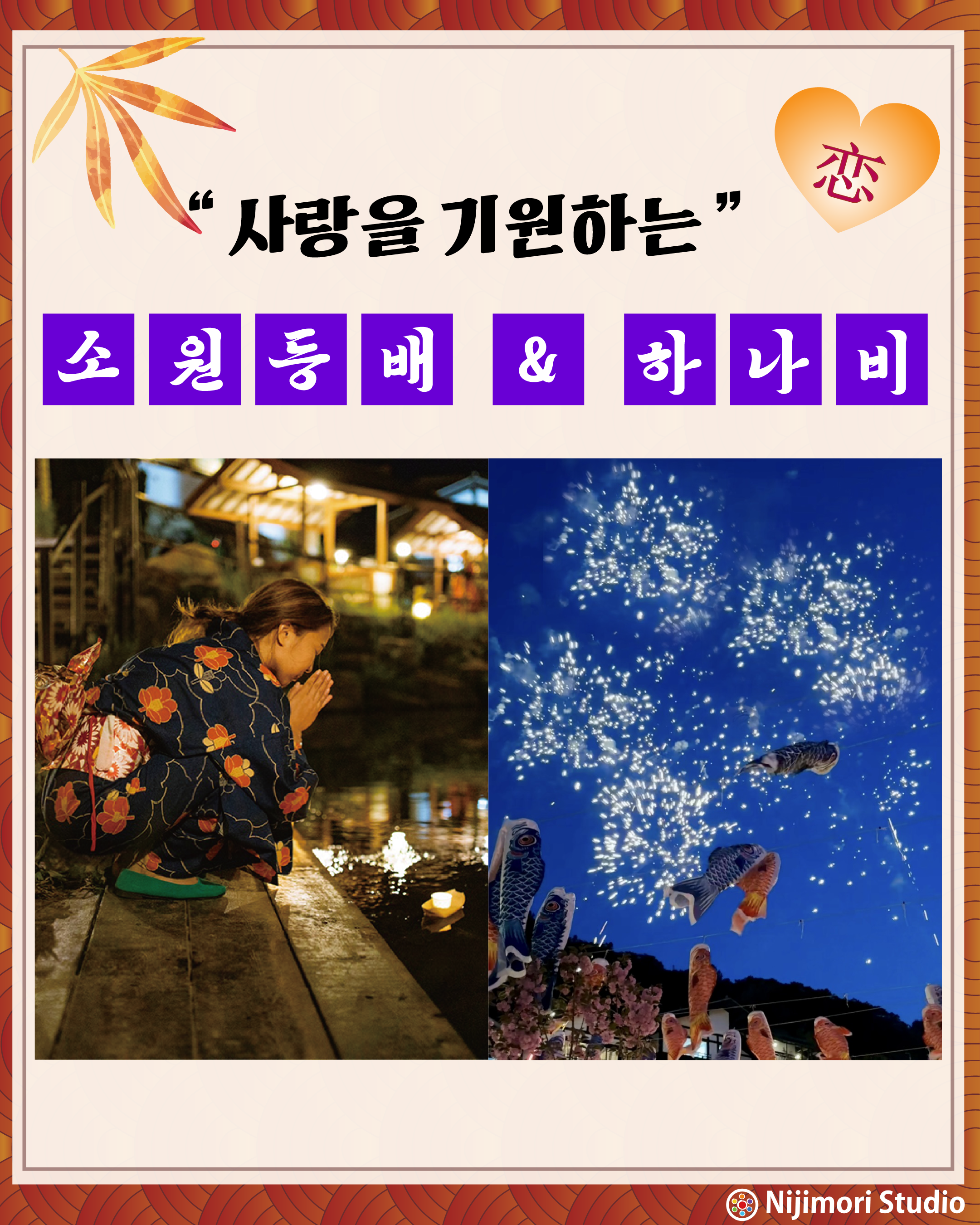 2025년 니지모리스튜디오 아키마츠리는 단순한 축제가 아닌, 문화적 경계를 넘어선 특별한 경험을 제공할 거예요. 고즈넉한 일본의 가을 정취, 화려한 밤의 축제, 그리고 이색적인 체험 프로그램들이 한데 어우러져 우리에게 깊은 낭만을 선사할 것입니다. 일상의 스트레스는 잠시 잊고, 이곳에서 새로운 설렘과 특별한 추억을 만들어보세요. 붉게 물든 단풍 아래에서 소중한 사람과 함께하는 소원등배 체험은 올가을 최고의 하이라이트가 될 거예요! 지금 바로 방문 일정을 확정하고, 료칸 숙박이나 전통 의상 대여와 같은 추가 체험도 놓치지 마시길 바랍니다!