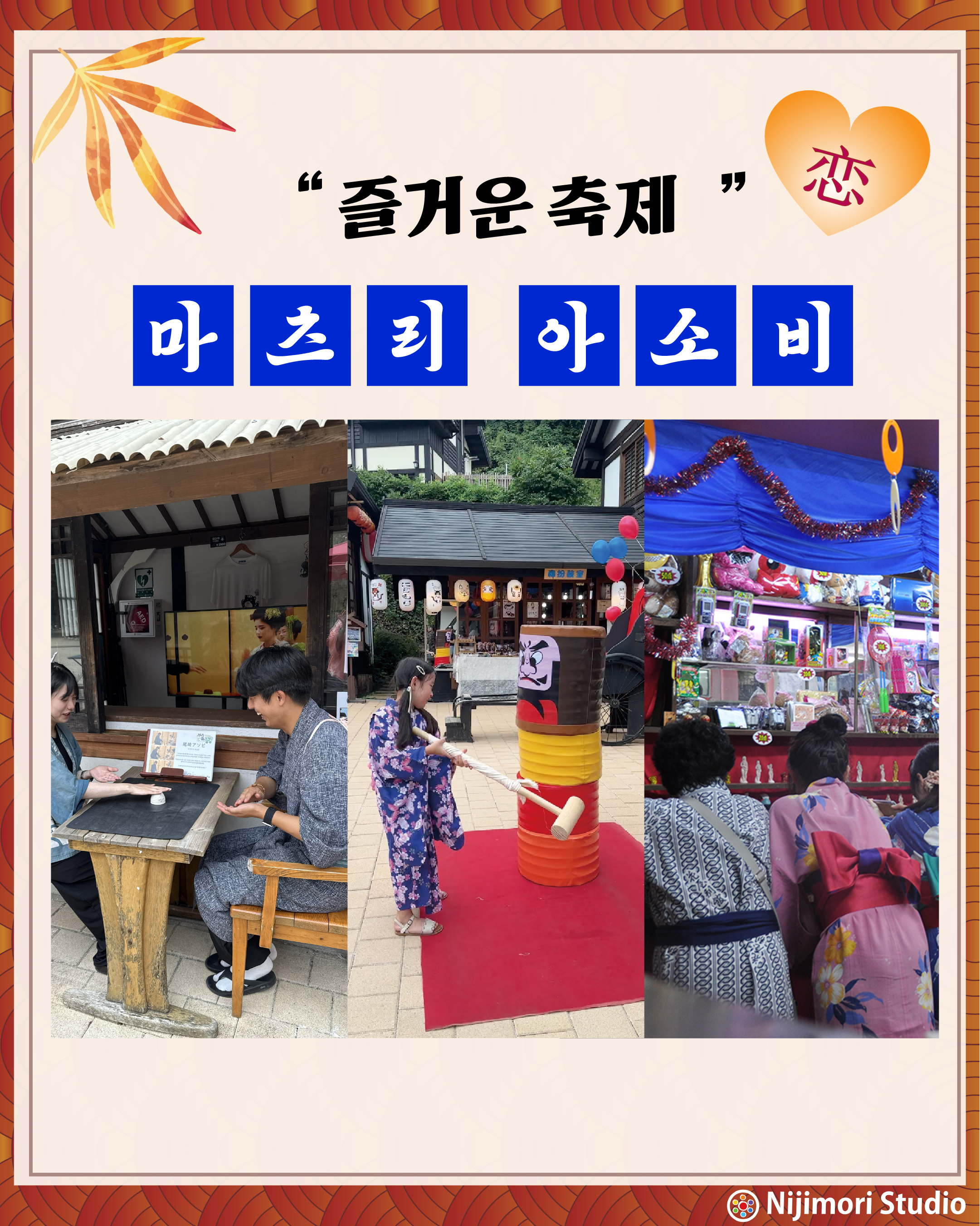 한국에서 가장 이색적인 여행지를 꼽으라면 단연 경기도 동두천의 니지모리스튜디오를 빼놓을 수 없죠. 마치 일본 교토의 고즈넉한 마을을 그대로 옮겨놓은 듯한 이곳이, 매년 가을이 되면 더욱 특별한 축제로 물들거든요. 바로 일본의 전통 가을 축제인 '아키마츠리(秋祭り)'입니다. 2025년 가을 트렌드로 떠오른 니지모리스튜디오 아키마츠리는 단순한 포토존을 넘어, 잊고 있던 설렘과 낭만을 선사하는 경험을 제공할 거예요.