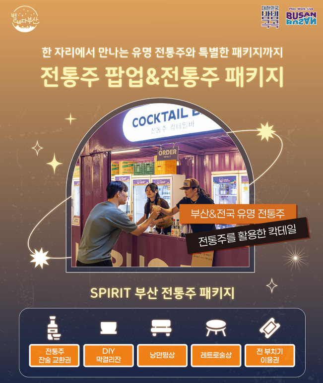 | 밤마실 주막 | '스피릿 부산' 팝업 스토어 | 다른 곳에서 접하기 힘든 부산 로컬 전통주 시음 및 구매 (MZ세대 취향 저격) |