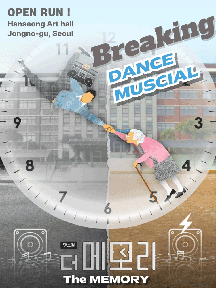 - 작품 소개: 대사 없이 배우들의 역동적인 몸짓과 감각적인 조명, 음악으로만 이루어진 퍼포먼스 연극입니다. '기억 속 시간은 끝나지 않는다'라는 메시지를 담아, 한 인물의 삶과 기억의 흐름을 파편화된 이미지들로 표현합니다.
